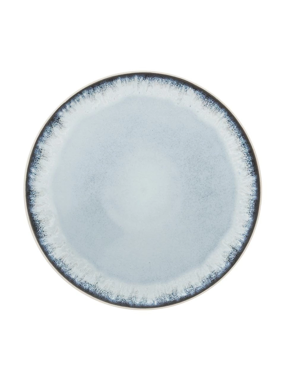 Westwing Collection Assiette à pâtes faïence émaillée turquoise Anthia, 2 pièces, Ø 19 x haut. 5 cm