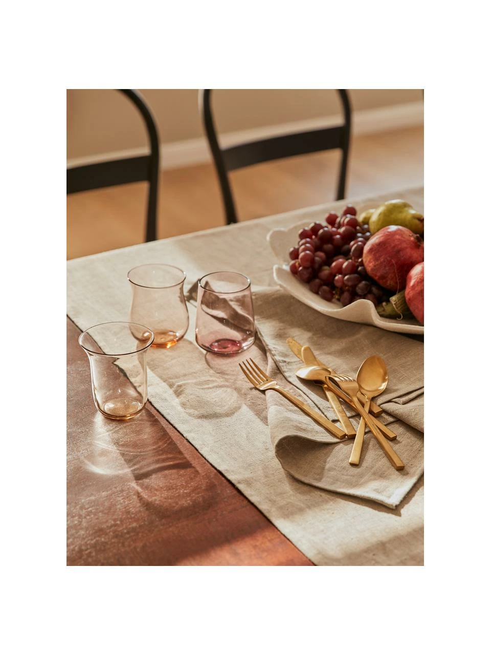 – 6 petits verres à eau soufflés bouche, de formes et couleurs différentes