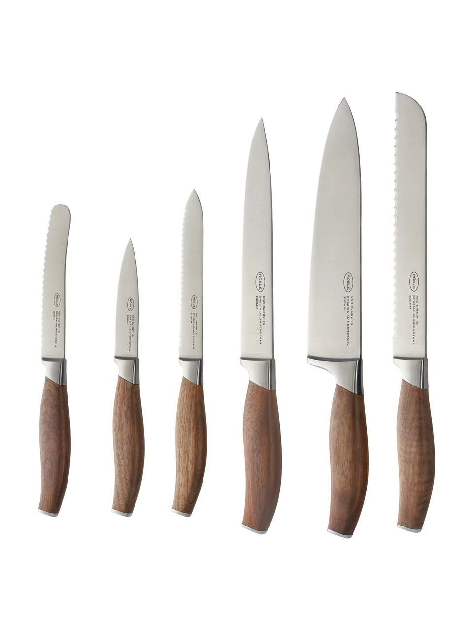 – Composé de 1 couteau à découper, 1 couteau à pain, 1 couteau de chef, 1 couteau d’office, 1 couteau utilitaire et 1 couteau petit déjeuner