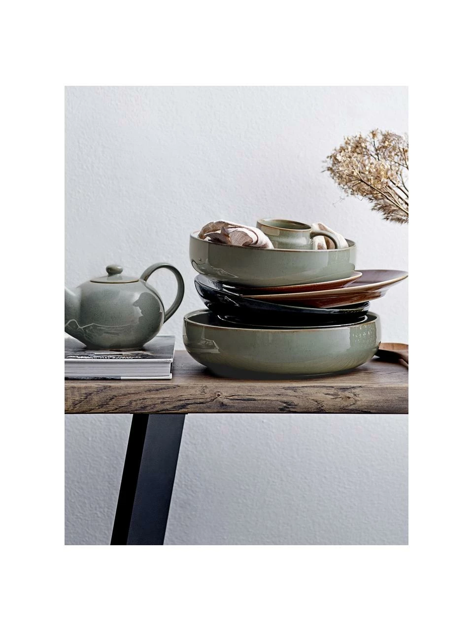 Westwing Collection Assiette à pâtes faïence émaillée turquoise Anthia, 2 pièces, Ø 19 x haut. 5 cm
