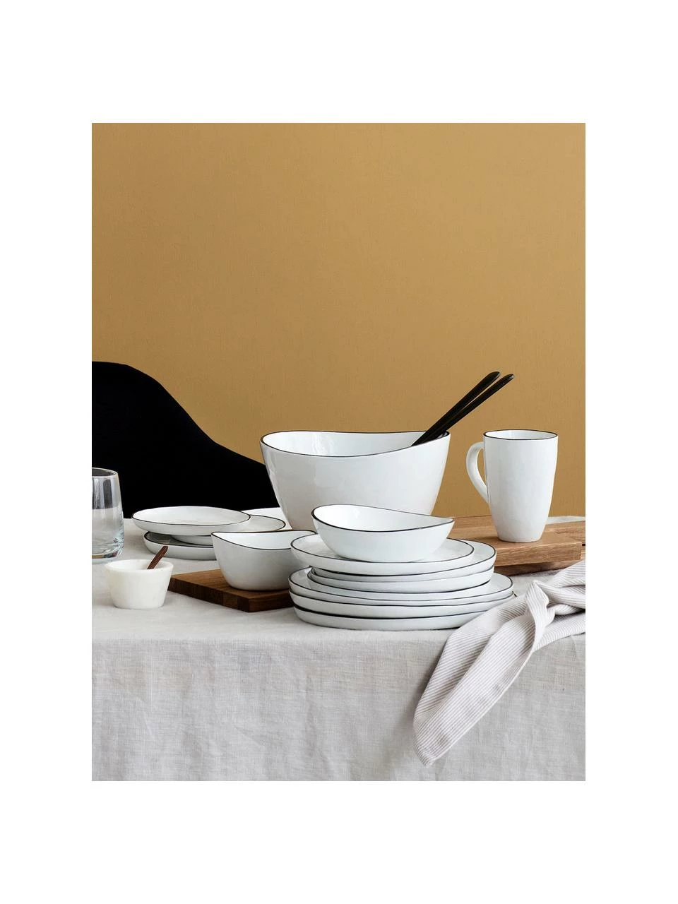 La série de vaisselle Salt de Broste Copenhagen enchante par son aspect rustique et artisanal. L’émail blanc de ce service de table aux formes élégantes de Broste Copenhagen s’inspire du sel minéral naturel. Le discret rebord noir est appliqué à la main, ce qui rend chaque exemplaire de la collection Salt unique