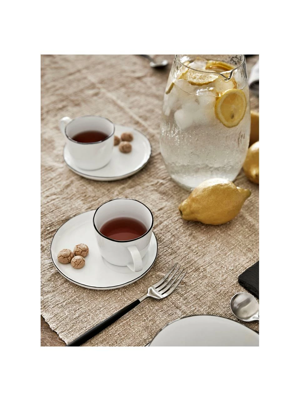 La série de vaisselle Salt de Broste Copenhagen enchante par son aspect rustique et artisanal. L’émail blanc de ce service de table aux formes élégantes de Broste Copenhagen s’inspire du sel minéral naturel. Le discret rebord noir est appliqué à la main, ce qui rend chaque exemplaire de la collection Salt unique