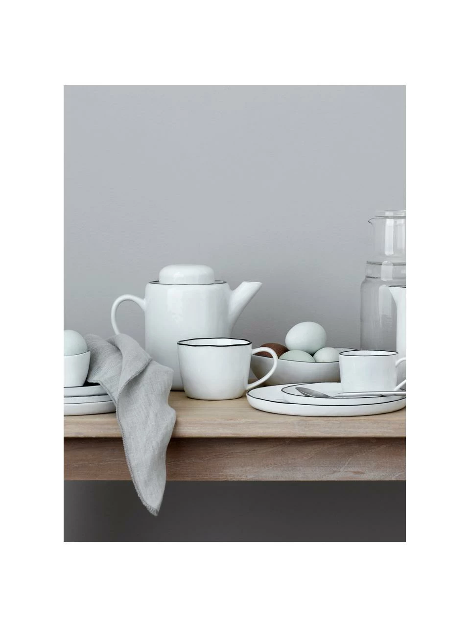 La série de vaisselle Salt de Broste Copenhagen enchante par son aspect rustique et artisanal. L’émail blanc de ce service de table aux formes élégantes de Broste Copenhagen s’inspire du sel minéral naturel. Le discret rebord noir est appliqué à la main, ce qui rend chaque exemplaire de la collection Salt unique