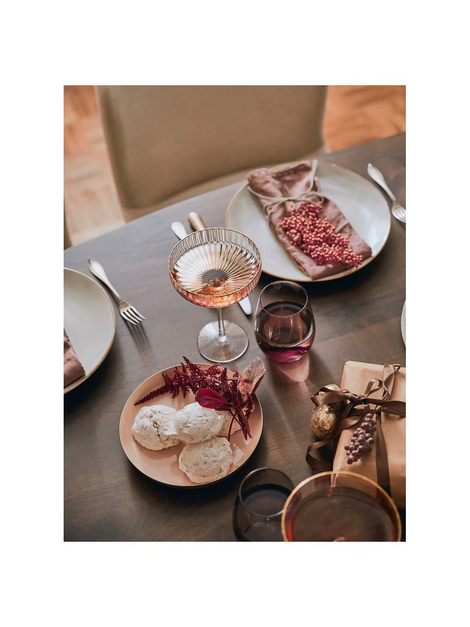 Dans le style Golden Twenties et avec des bords dorés, ces coupes à champagne glamour attirent tous les regards : cette année, vous pouvez faire revivre les années 1920 de manière contemporaine pour Noël et le Nouvel An. D’autres verres et une carafe assortie sont disponibles