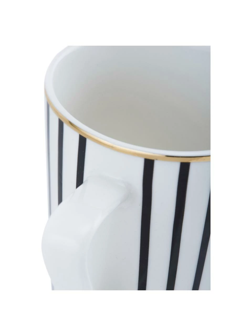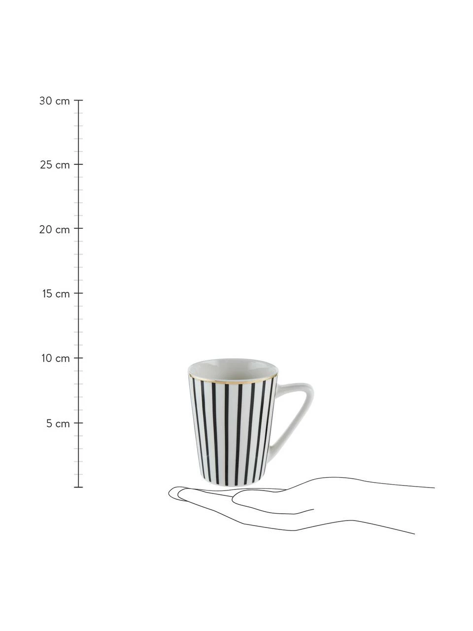 – 4 tasses à thé avec bord couleur dorée et jeu de lignes noires