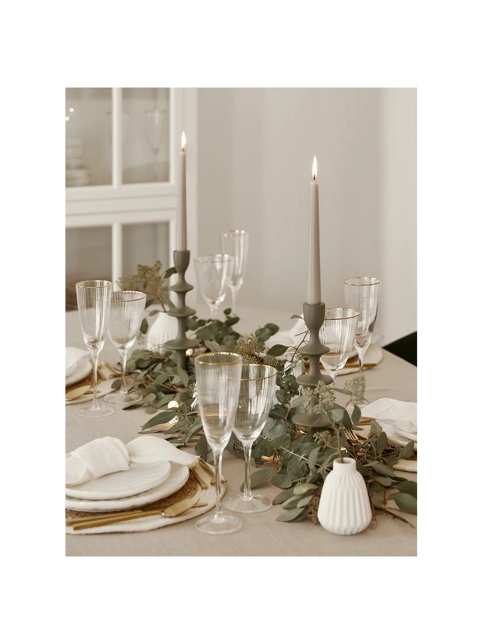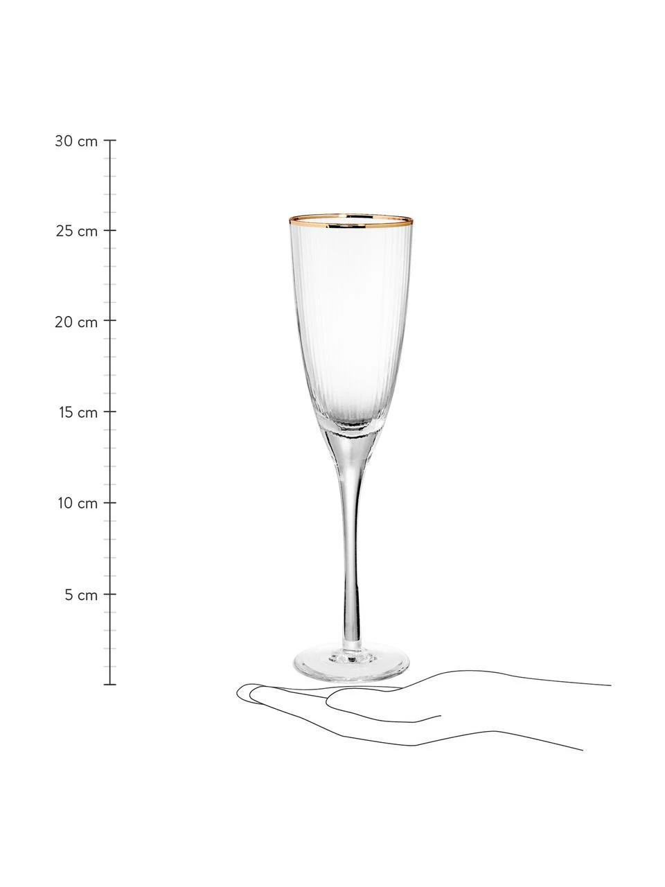 4 flûtes à champagne soufflés bouche, dotées d’un bord doré et d’une surface légèrement rainurée