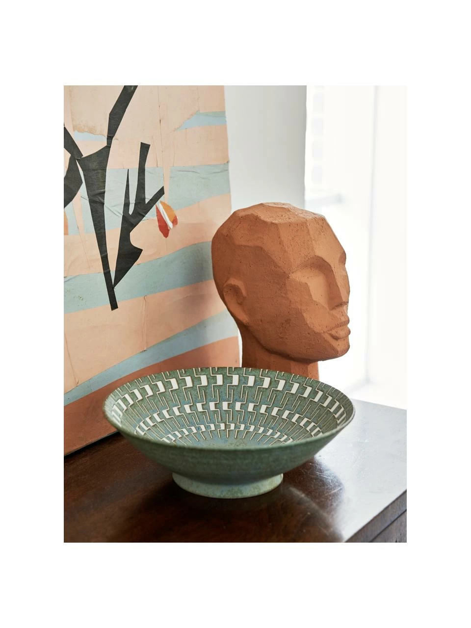 Westwing Collection Assiette à pâtes faïence émaillée turquoise Anthia, 2 pièces, Ø 19 x haut. 5 cm