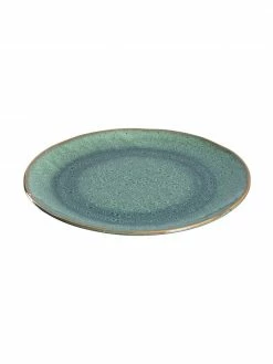 Westwing Collection Assiette à pâtes faïence émaillée turquoise Anthia, 2 pièces, Ø 19 x haut. 5 cm