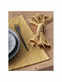 Serviette de table coton/lin jaune moutarde Abinadi, 2 pièces, larg. 42 x long. 42 cm