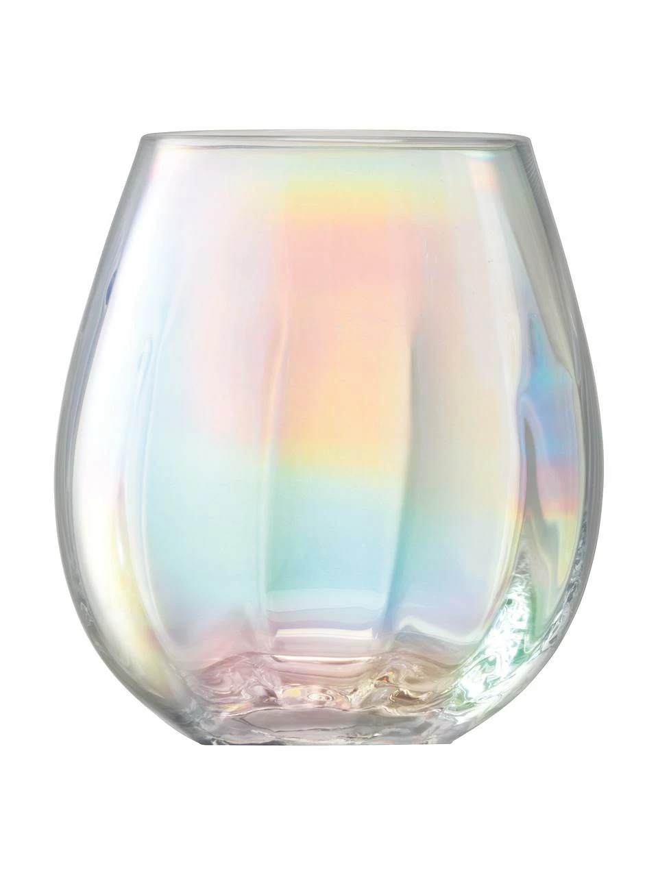 – 4 verres à eau soufflés et peints à la main avec un effet de nacre chatoyant