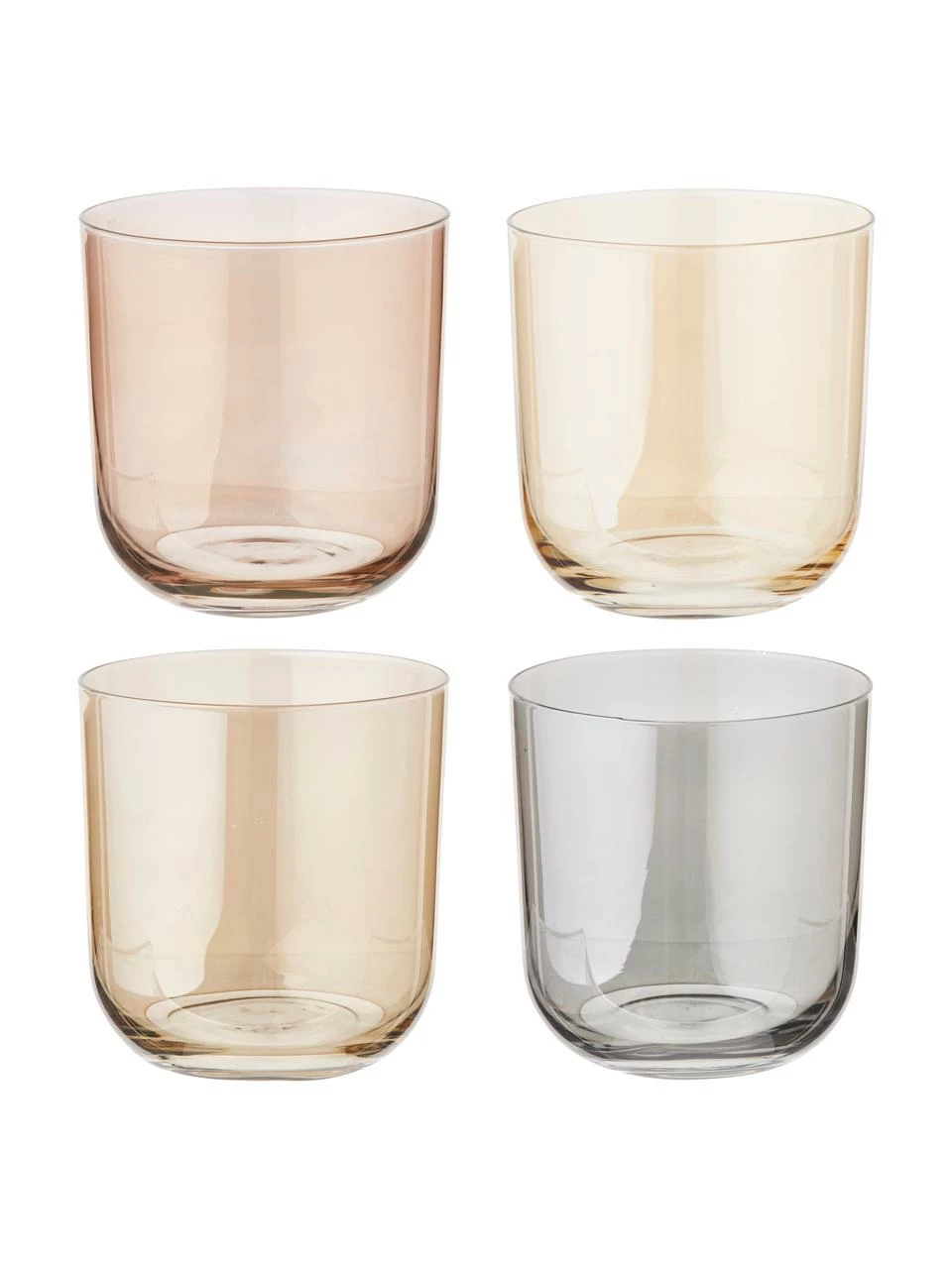 – 4 verres à eau en 4 couleurs différentes, peintes à la main