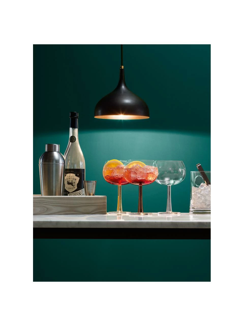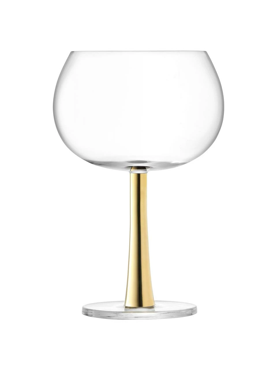 – 2 verres à gin en verre soufflé bouche avec une élégante tige dorée