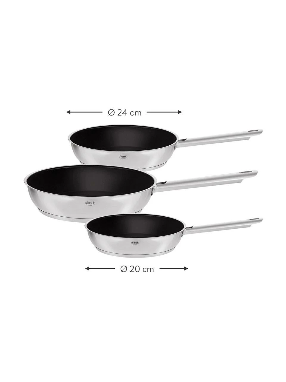 3 poêles de différentes tailles avec revêtement antiadhésif