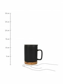 Sema Tasse avec couvercle et passoire Nordika, base en bois d’acacia, Ø 9 x haut. 12 cm, 370 ml