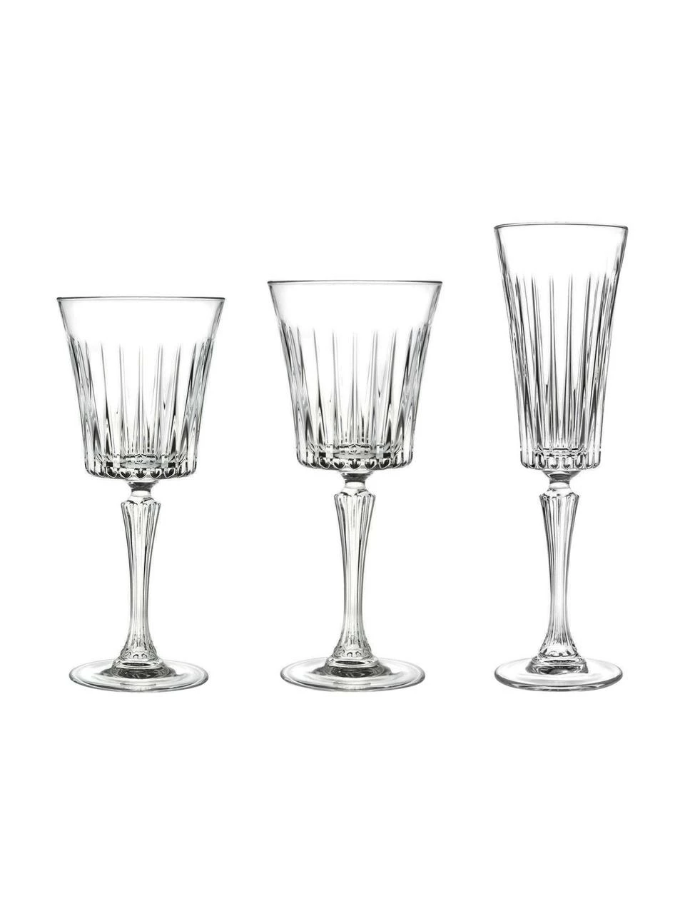 – Ensemble de verres composé de 18 éléments, dont 6 flûtes à champagne, 6 verres à vin blanc et 6 verres à vin rouge