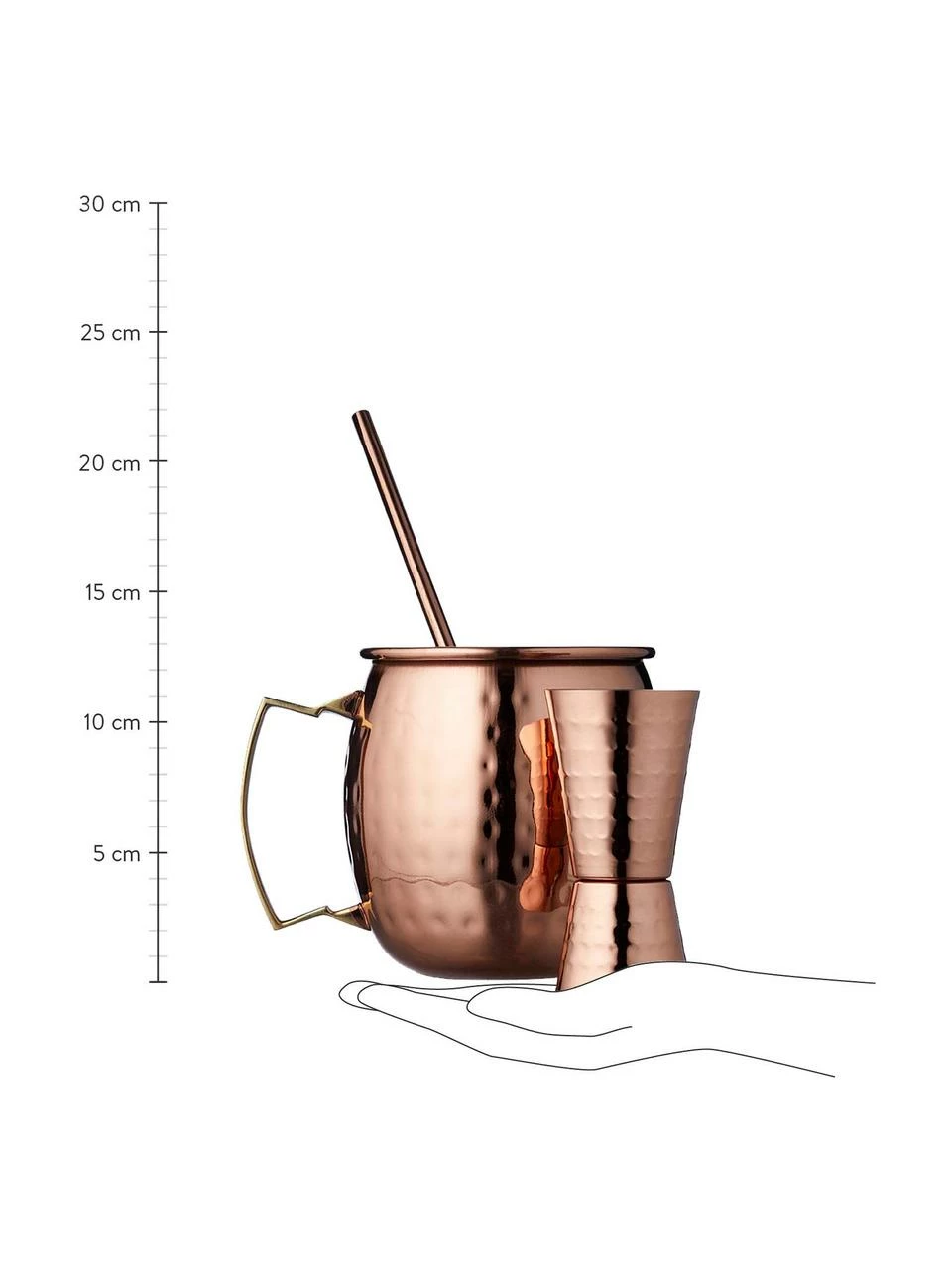 – Ensemble de tasses Moscow Mule composé de 4 tasses Moscow Mule classiques, 4 pailles et 1 gobelet doseur