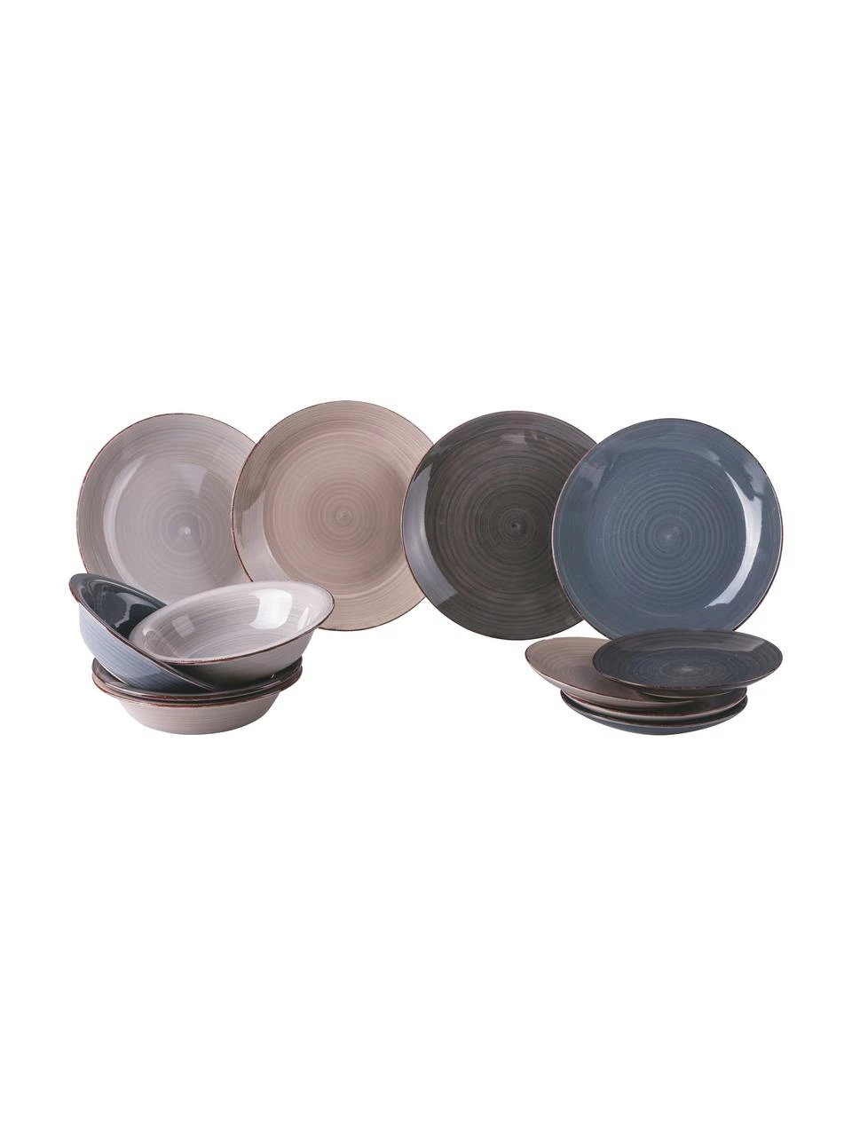– Composé de 4 assiettes plates, 4 assiettes creuses et 4 assiettes à dessert dans 4 différentes couleurs