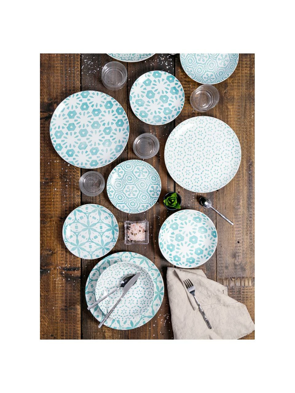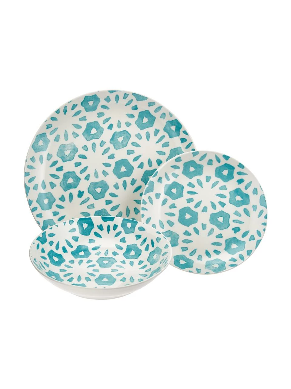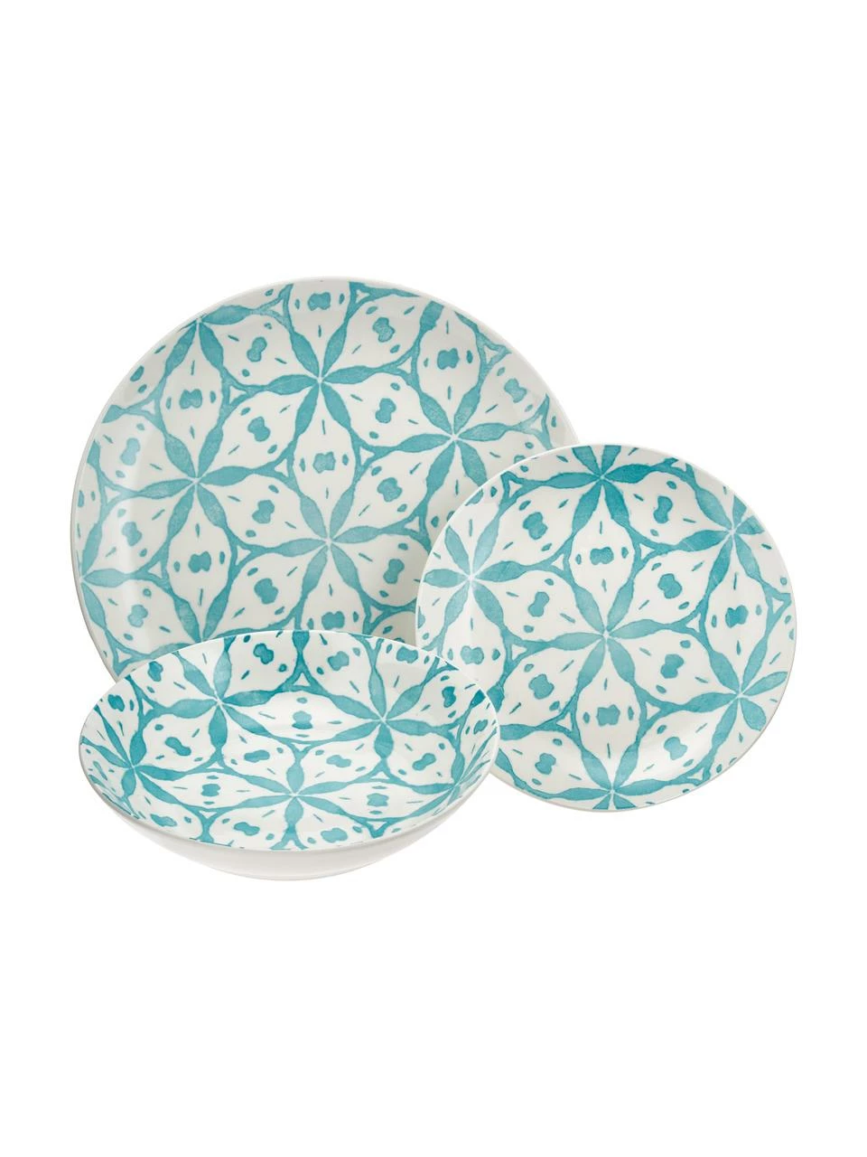 – Composé de 6 assiettes à dîner, 6 assiettes à soupe et 6 assiettes à dessert de différents modèles
