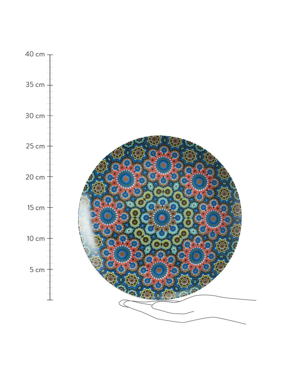 – Composé de 6 assiettes plates, 6 assiettes creuses et 6 assiettes à dessert dans 6 designs différents