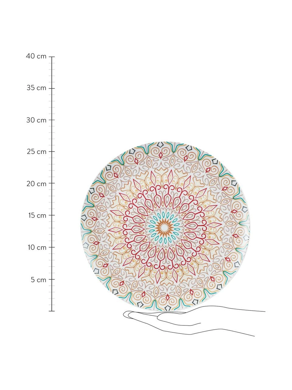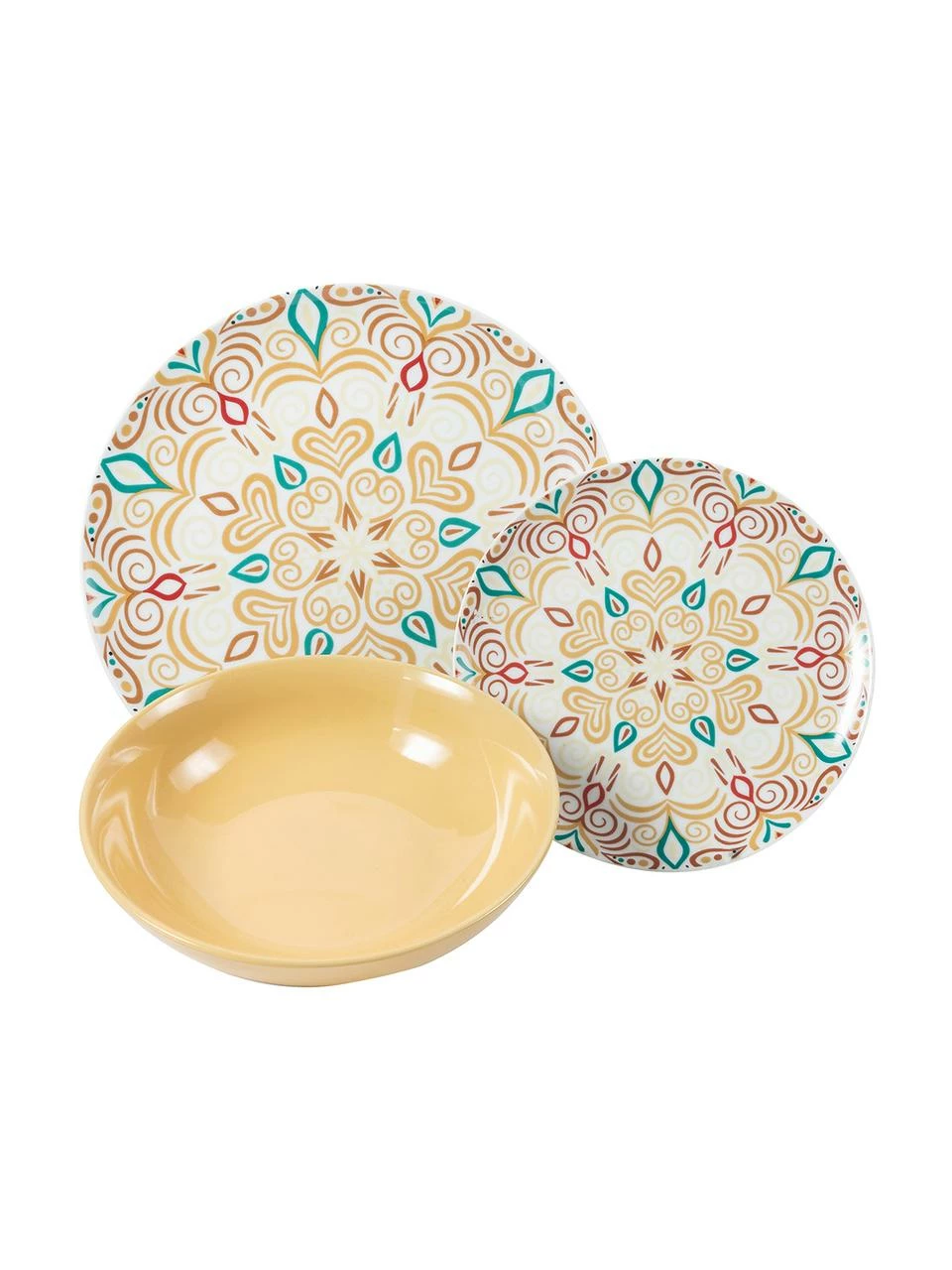 – Composé de 6 assiettes plates, 6 assiettes creuses et 6 assiettes à dessert dans 6 designs différents