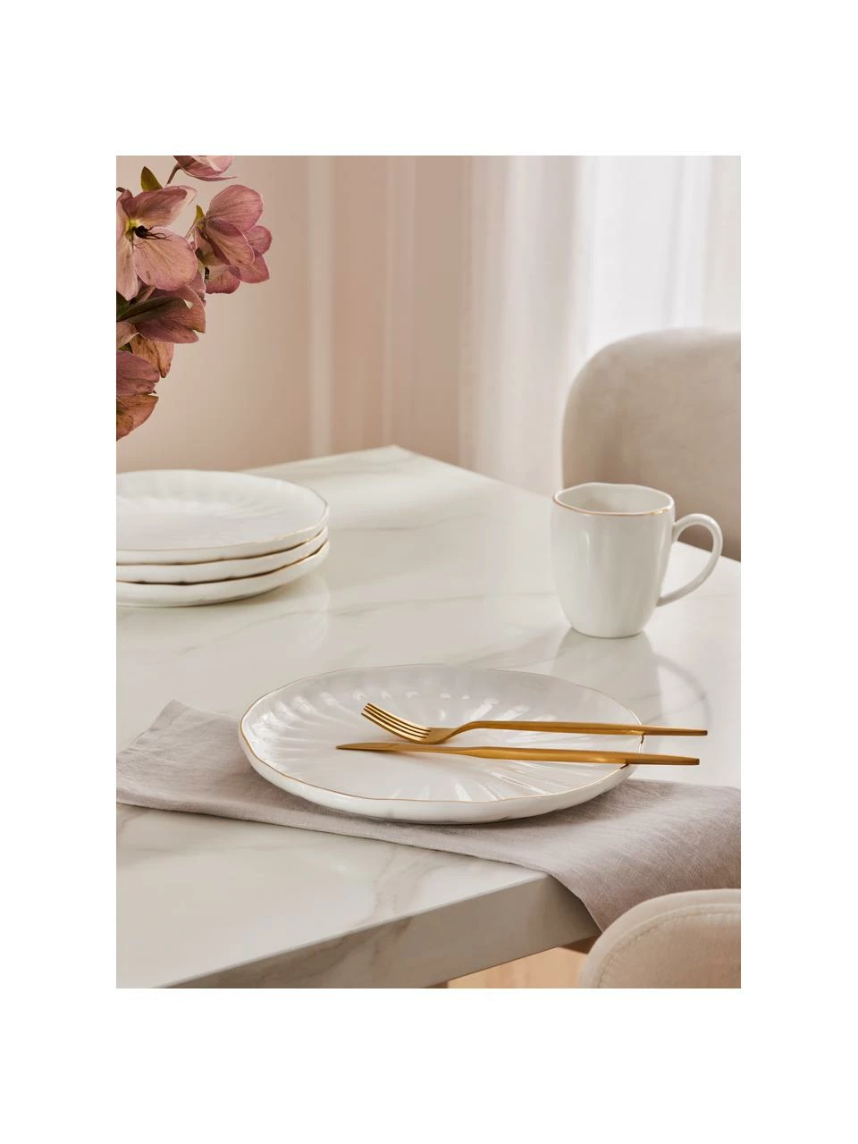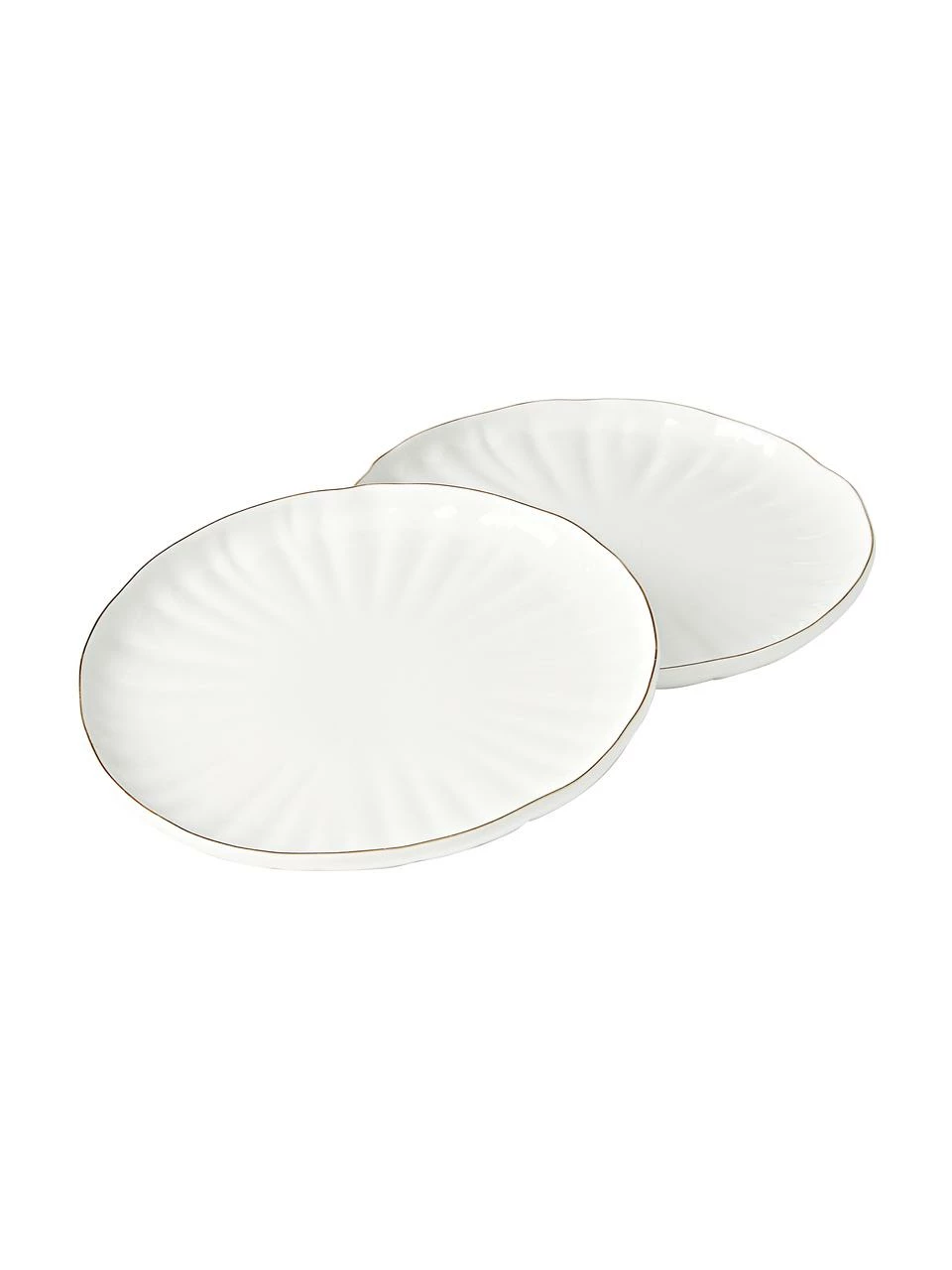 – 2 assiettes plates avec surface texturée et bord doré