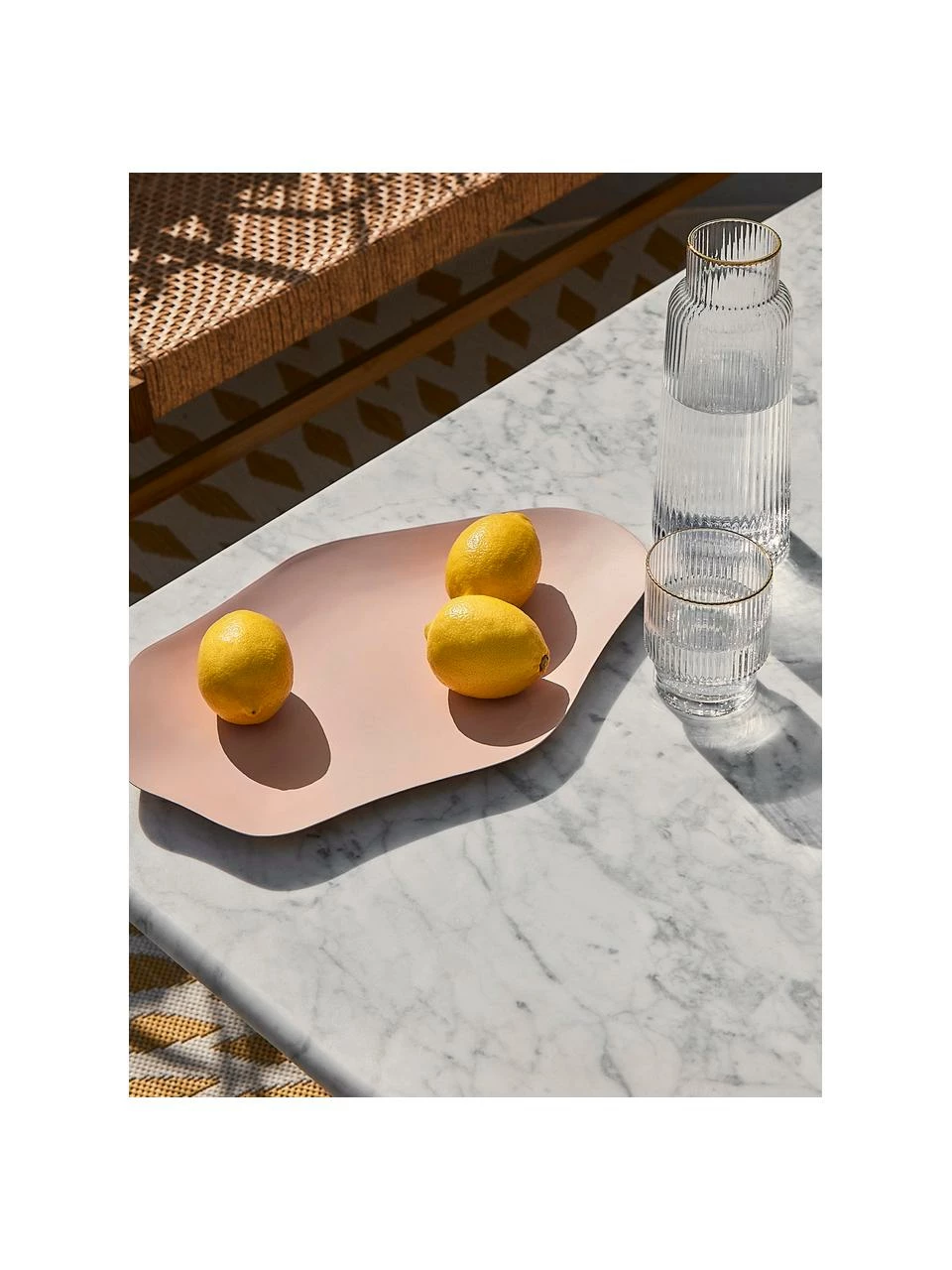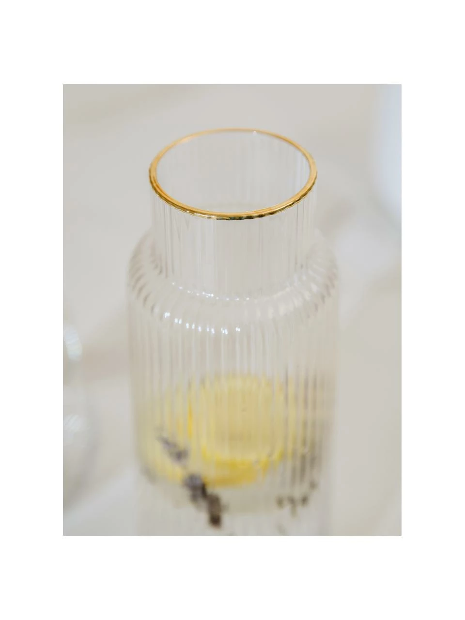 Avec notre carafe à eau Minna, la table sera glamour en un rien de temps ! Nous aimons la bordure dorée et le magnifique relief rainuré qui agrémente notre quotidien