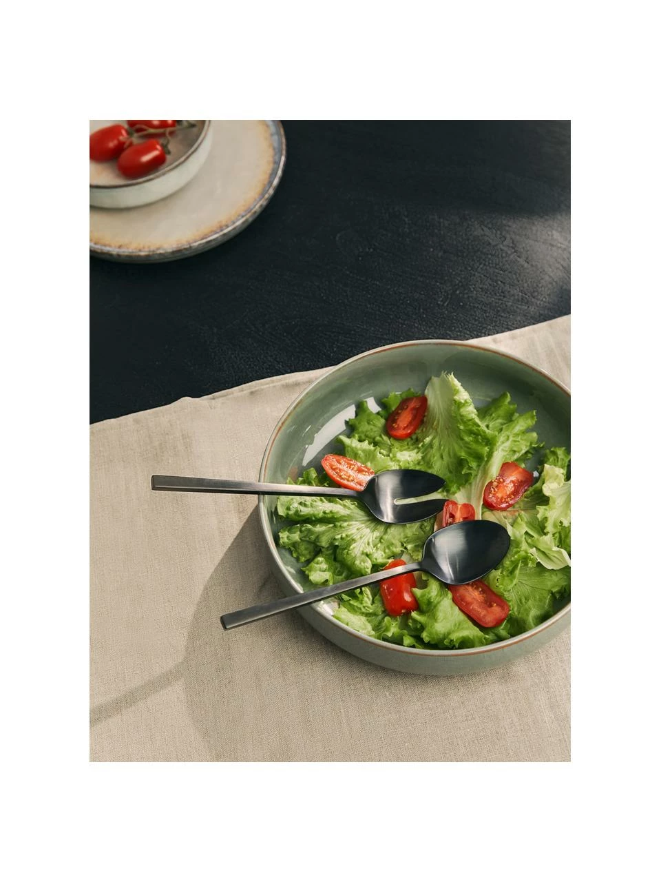 Grâce à sa finition mate soyeuse et à sa couleur noire moderne, le couvert à salade Shine laisse une impression durable