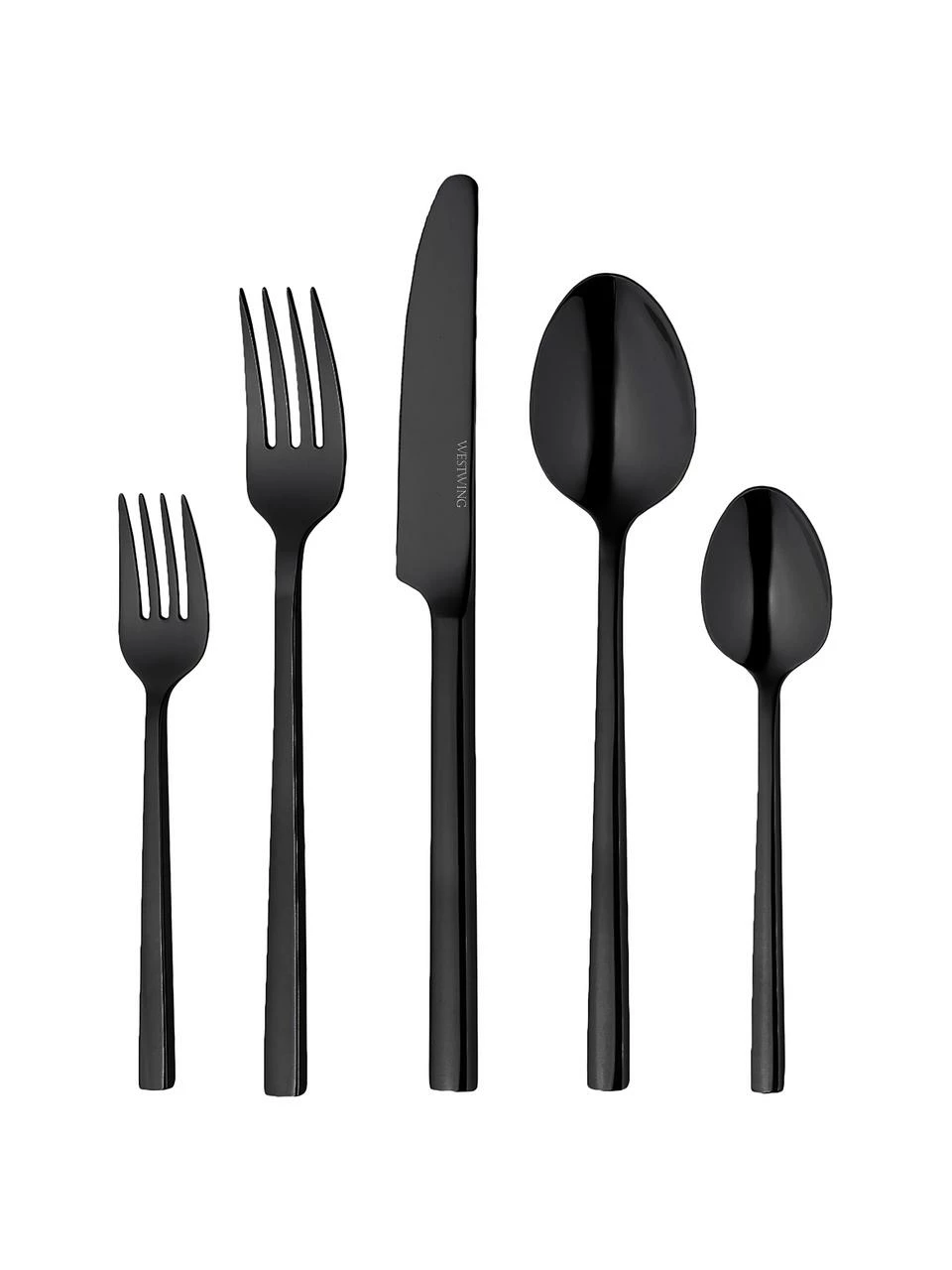 – Ménagère en acier inoxydable de haute qualité composée de 5 élém. couleur noire