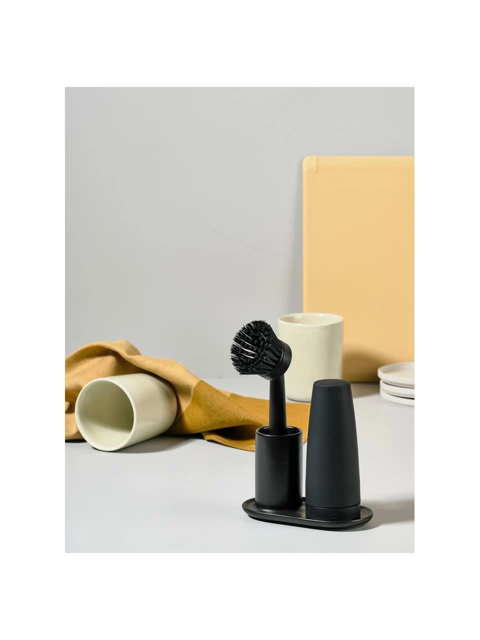 Ensemble à 3 éléments, comprenant 1 distributeur de détergent, 1 brosse à vaisselle et 1 support